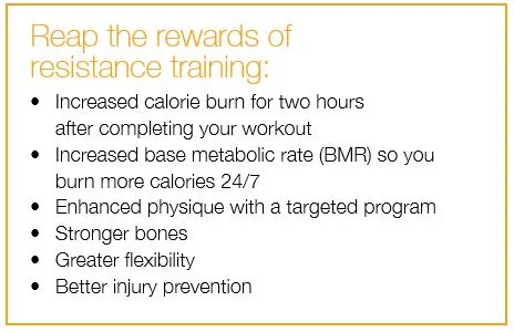 So you want to get into shape – maybe it’s part of your New Year’s resolution or maybe you just want to look your best for the beach and pool season. Whatever your reasons, you should be thinking about incorporating weight training into your workouts. Strength training uses resistance in the form of weights or even your own body weight to strengthen and condition the musculoskeletal system, improving muscle tone and endurance. It’s also been shown to improve mental clarity and psychological health. First and foremost, resistance training increases the number of calories your body burns, not only during your workout, but for a period of time afterwards. Including weights training in your exercise routine is a bit like investing in the future. The benefits of increased calorie burning due to exercise extend way beyond the period of time you spend exercising, with your metabolism being elevated for a couple of hours after your workout. This means you burn more calories all day, every day, even when you’re sitting on the couch relaxing. And a boosted metabolism can lead to reduced overall body fat.